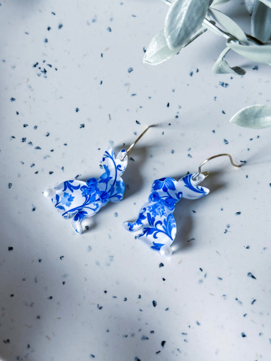Spring & Easter: Blue & White Floral Bunny w/ Pearl