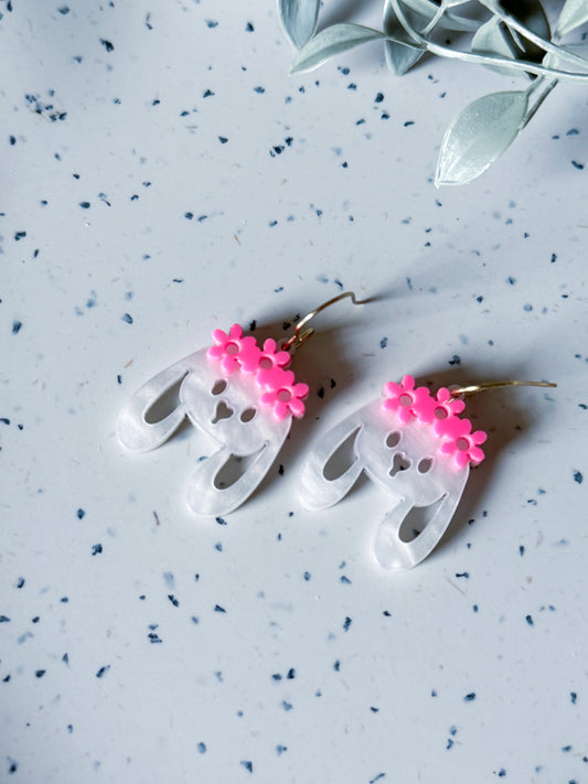 Spring & Easter: Pearl White Bunny w/ Pink Flowers